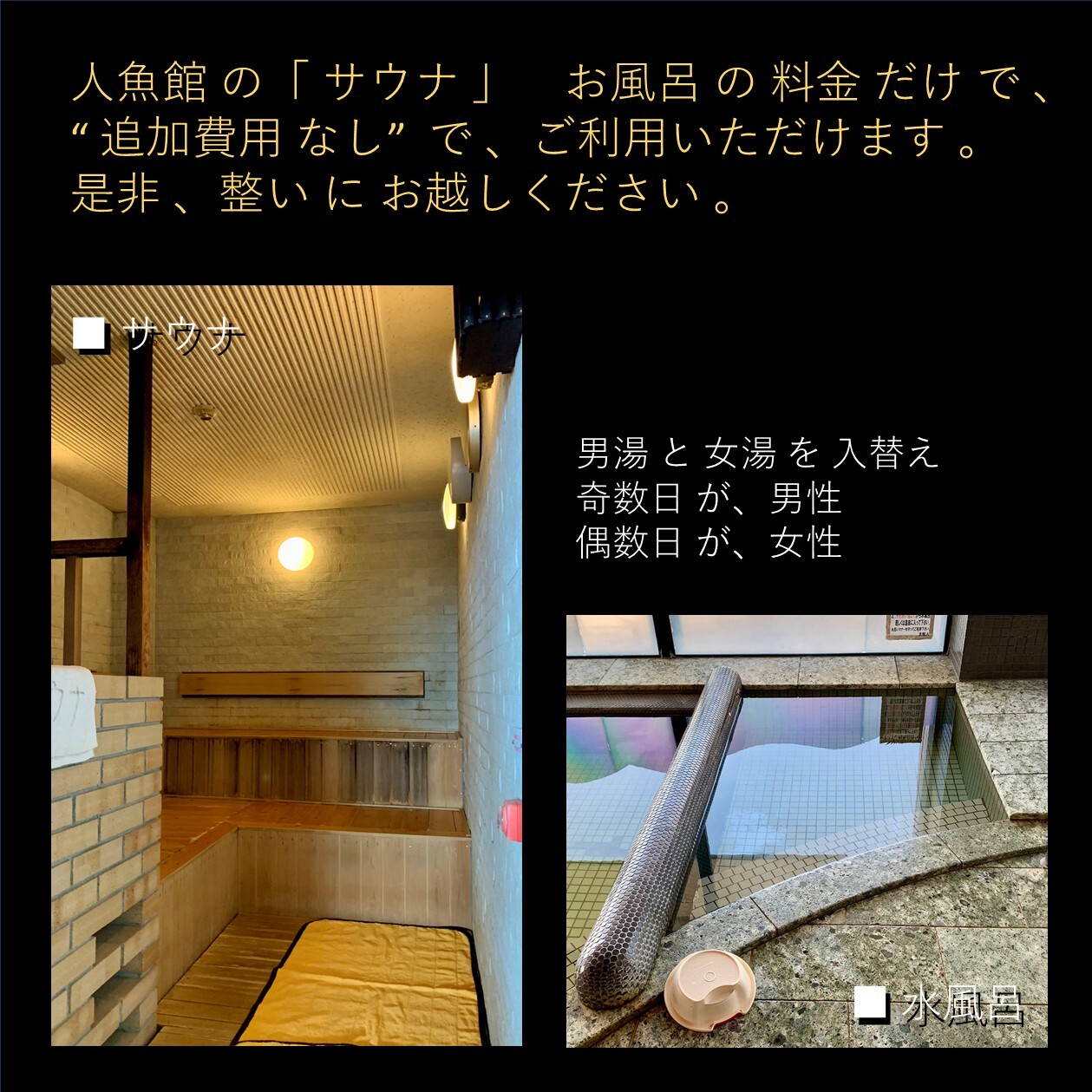 ■「サウナ」は 、通常 の 施設使用料金 を お支払いいただければ 、