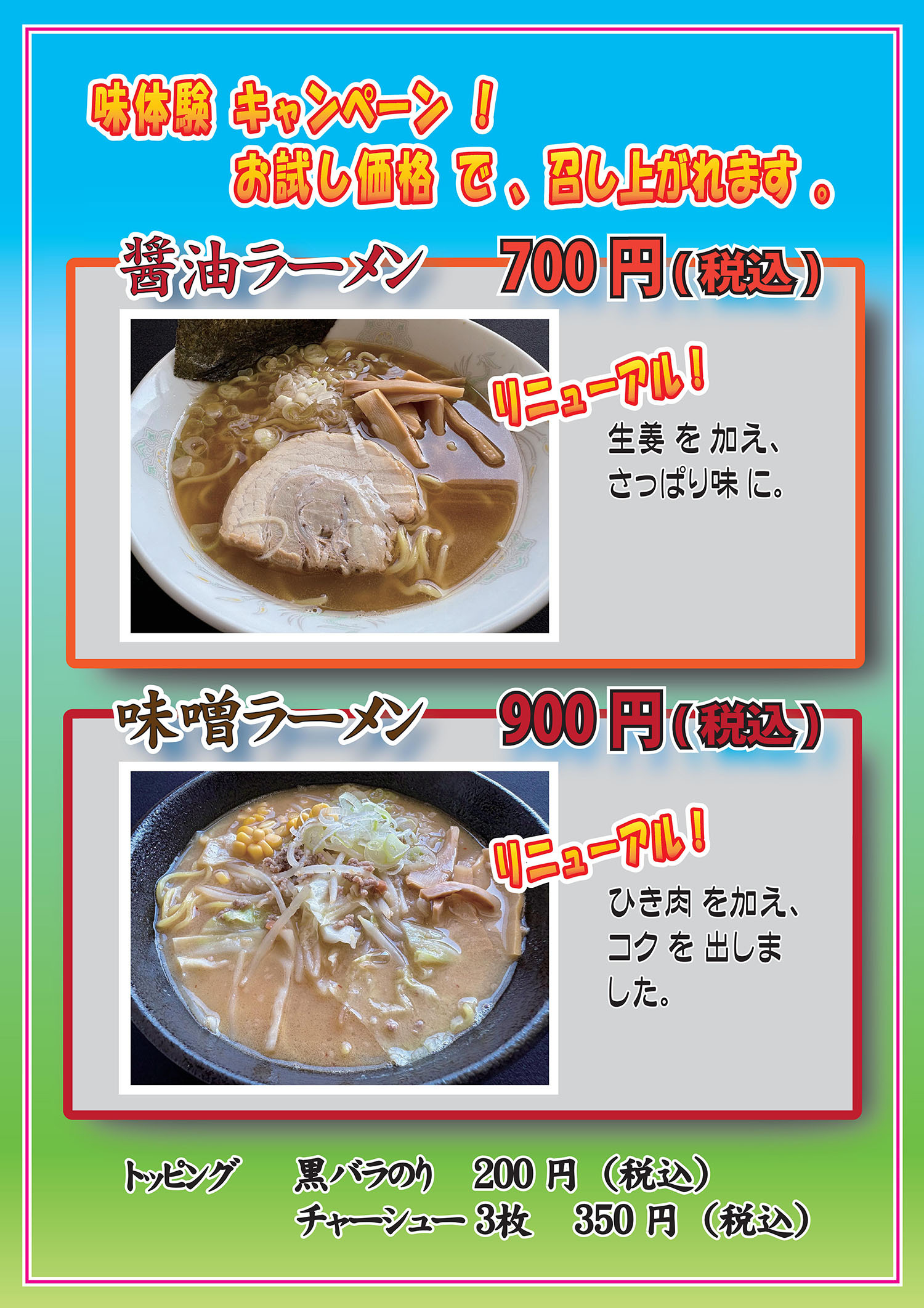 ラーメン " リニューアル キャンペーン " やってます 。