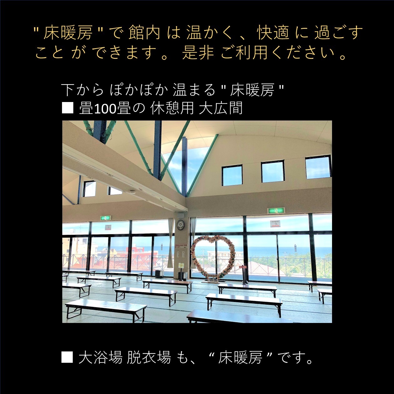 " 床暖房 " で 館内 は 温かく 、快適 に 過ごすこと が できます 。 是非 ご利用ください 。