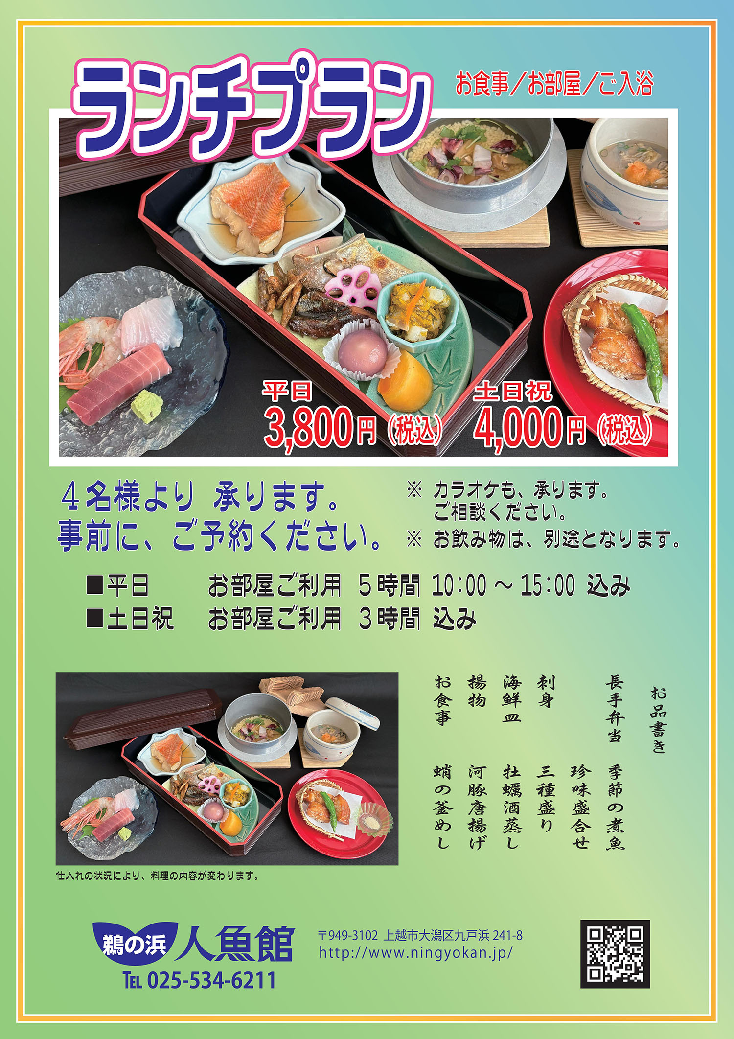 大広間 で 提供 12:00~13:00